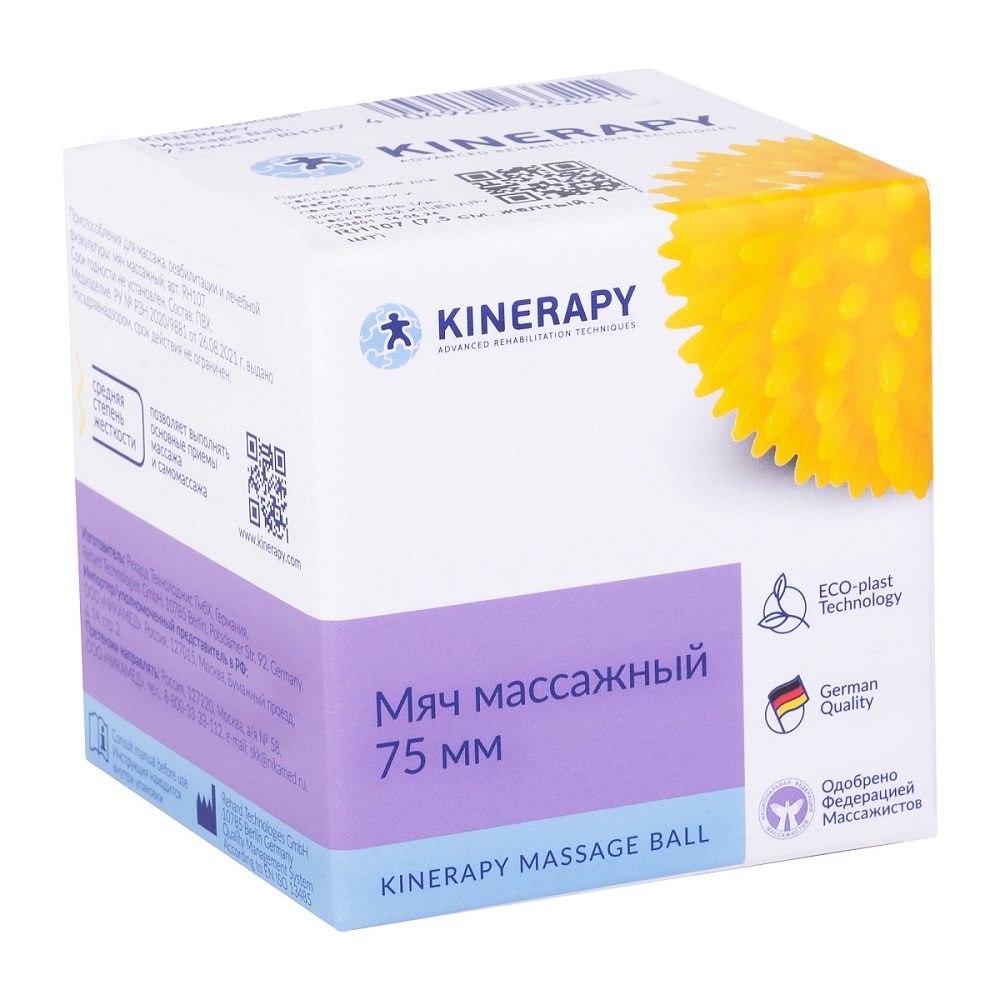 Мяч-массажер KINERAPY Massage Ball RH107 можно использовать для массажа и тренировки мускулатуры кисти, развития тактильной чувствительности.